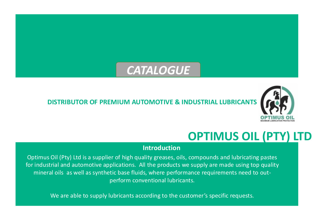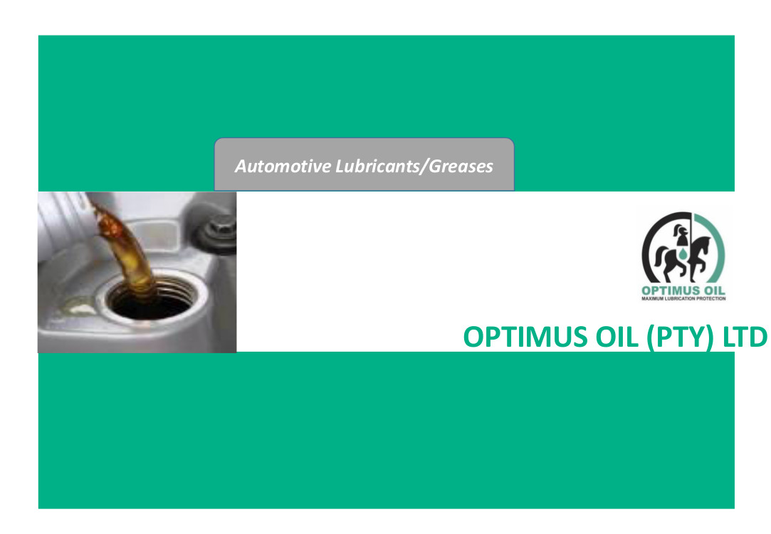 Optimus Oil (Pty) Ltd is a supplier of high quality greases, oils, compounds and lubricating pastes for industrial and automotive applications.